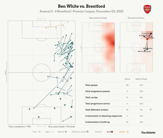 怀特在对阵布伦特福德时确实做到了,他帮助阿森纳继续保持对第二名曼城5分的领先优势。而接下来挑战是,在节日期间密集的赛程里,他要每周至少两次完成这样的表现。